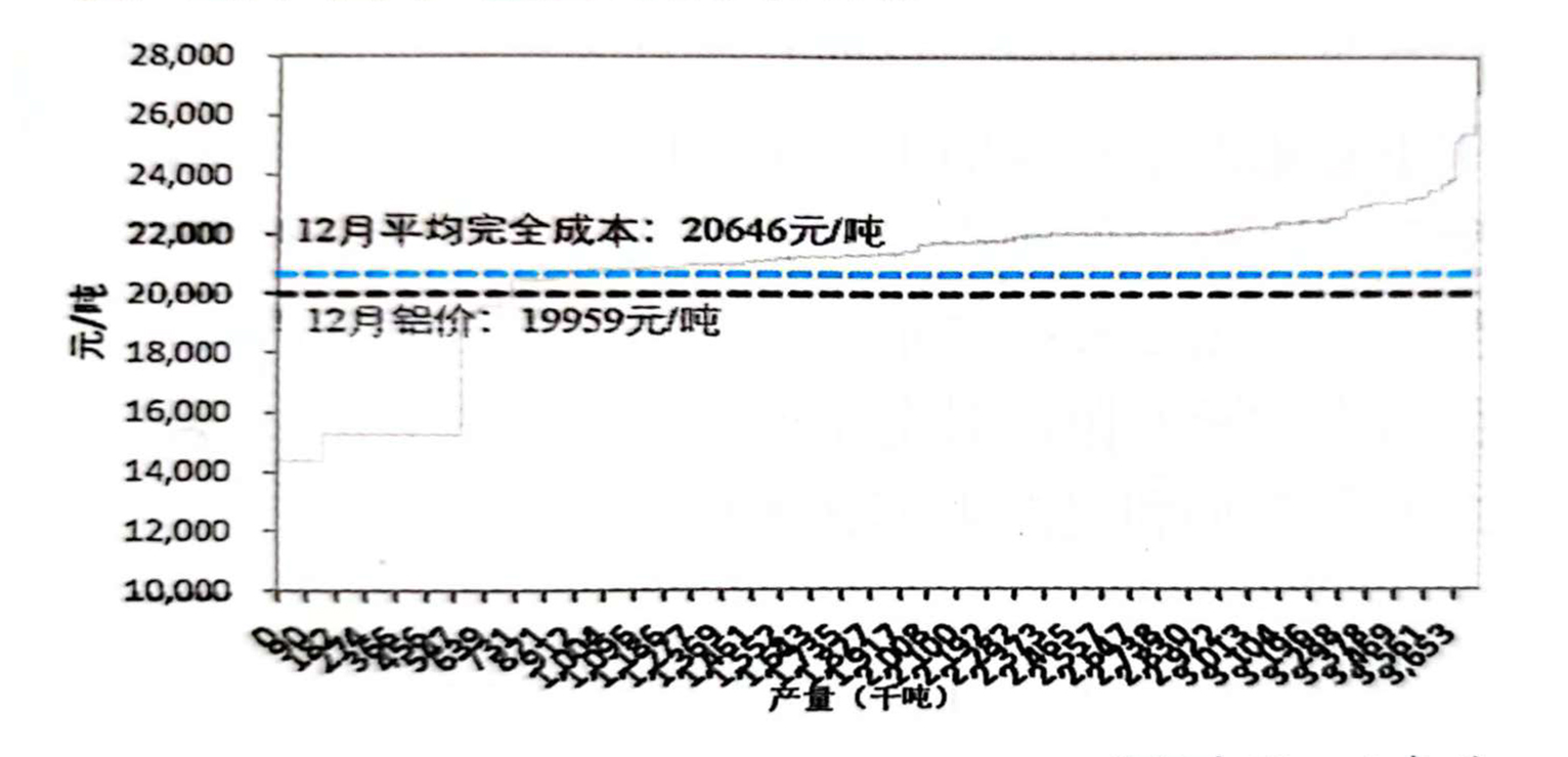 圖2-5 2024年12月中國(guó)電解鋁行業(yè)產(chǎn)能成本曲線