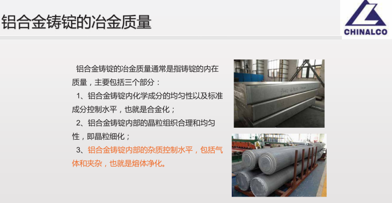 西南鋁業(yè)林林總工引入潔凈鋁概念,熔體凈化是鋁合金鑄錠質(zhì)量的關(guān)鍵。AlTi5C0.2La無TiB2聚集沉淀及堵塞過濾網(wǎng)等影響,進(jìn)一步減少了細(xì)化劑對(duì)過濾器過濾性能的影響,更少鹽類夾雜、更純凈,可進(jìn)一步提高鋁熔體潔凈度,提高鑄錠質(zhì)量及成品率。