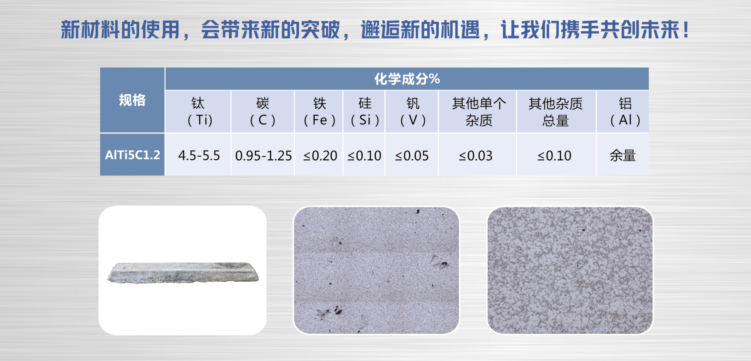 1.AITi5C1.2中TiC陶瓷顆粒時效性可達(dá)6個小時,適用于爐內(nèi)添加,操作簡便,適用于大部分需要提升機(jī)械性能的變形鋁合金產(chǎn)品及鑄造鋁合金產(chǎn)品;